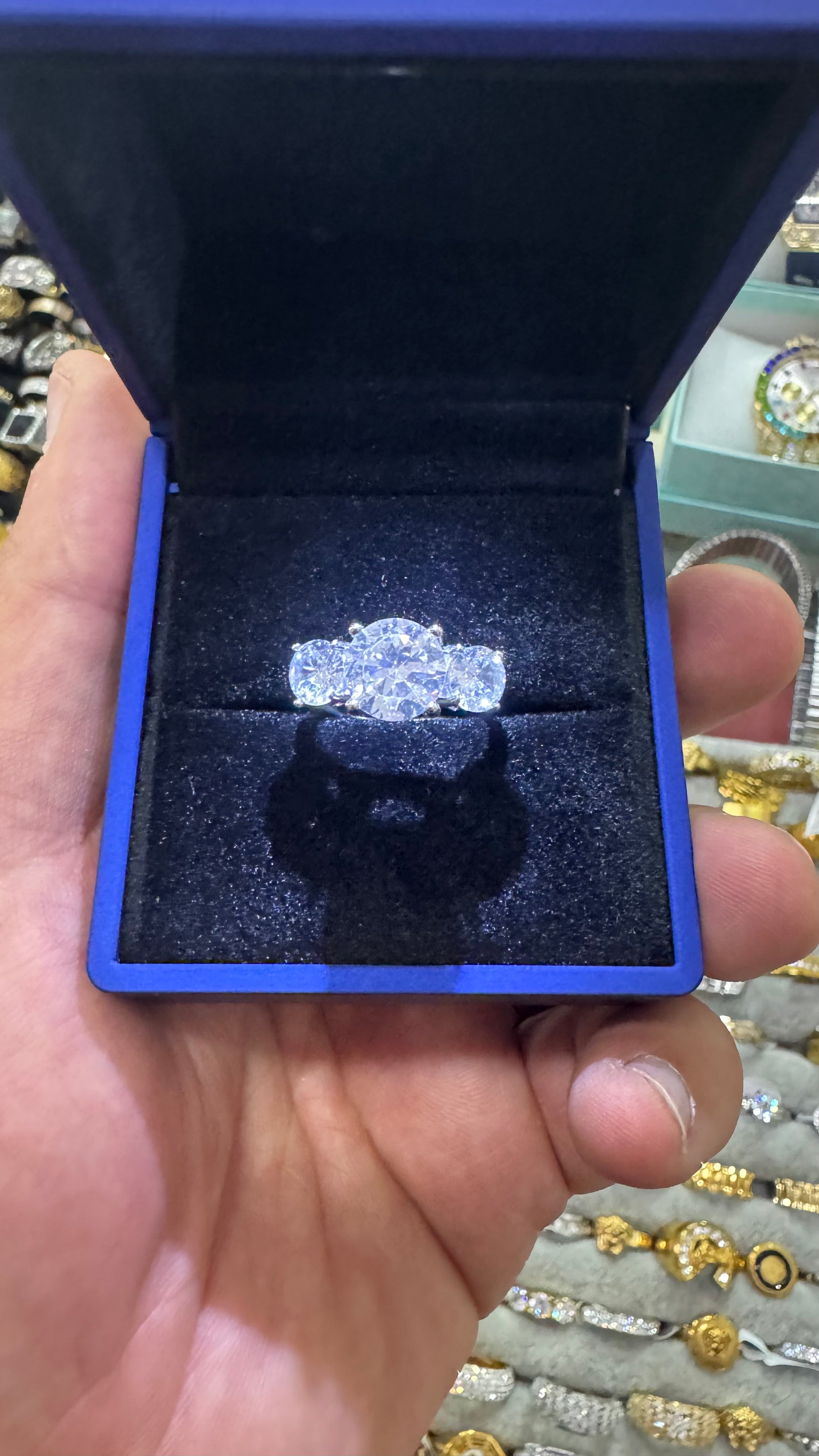 Anello Trilogy, pietre grandi, colore argento regolabile in acciaio