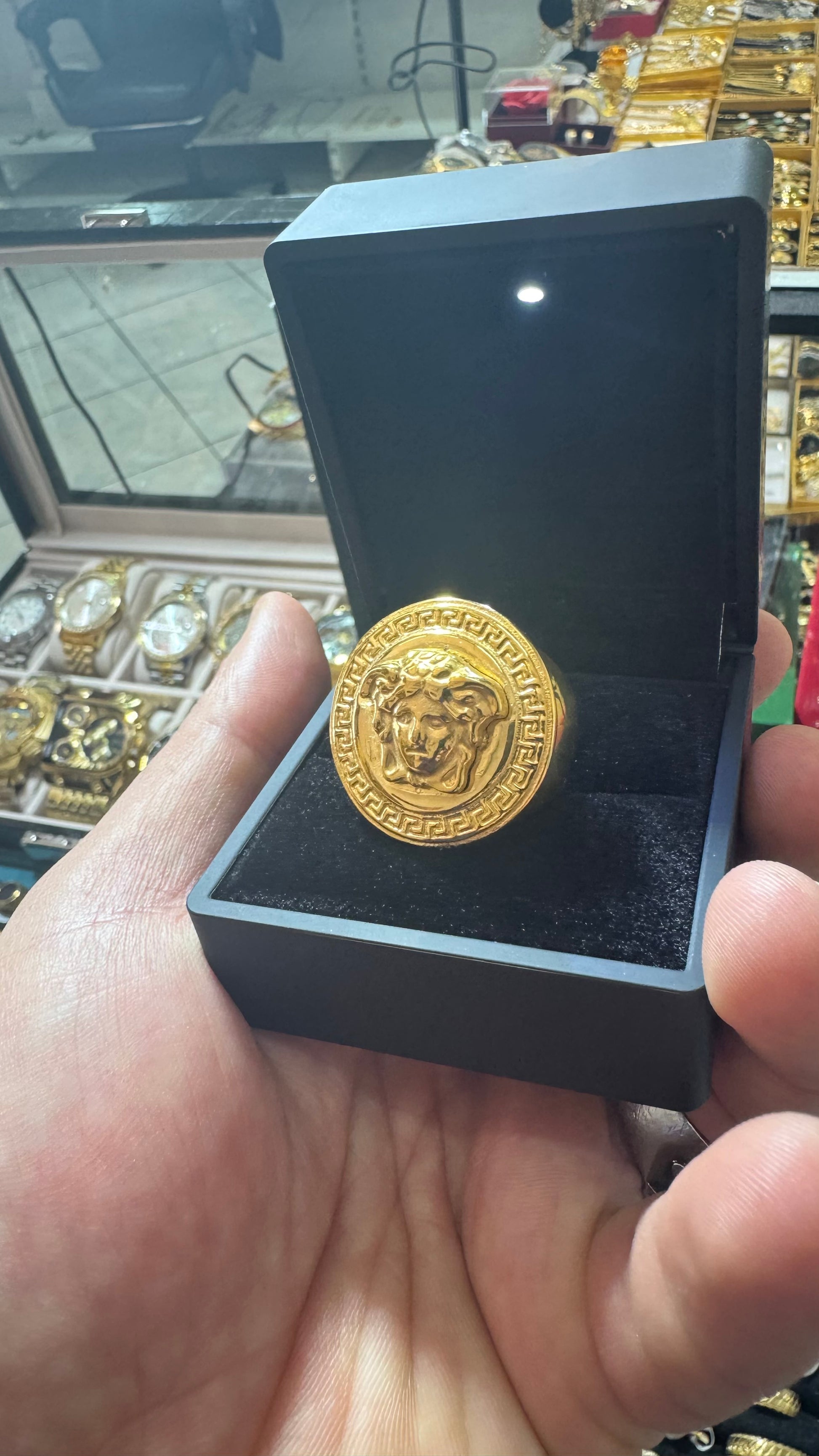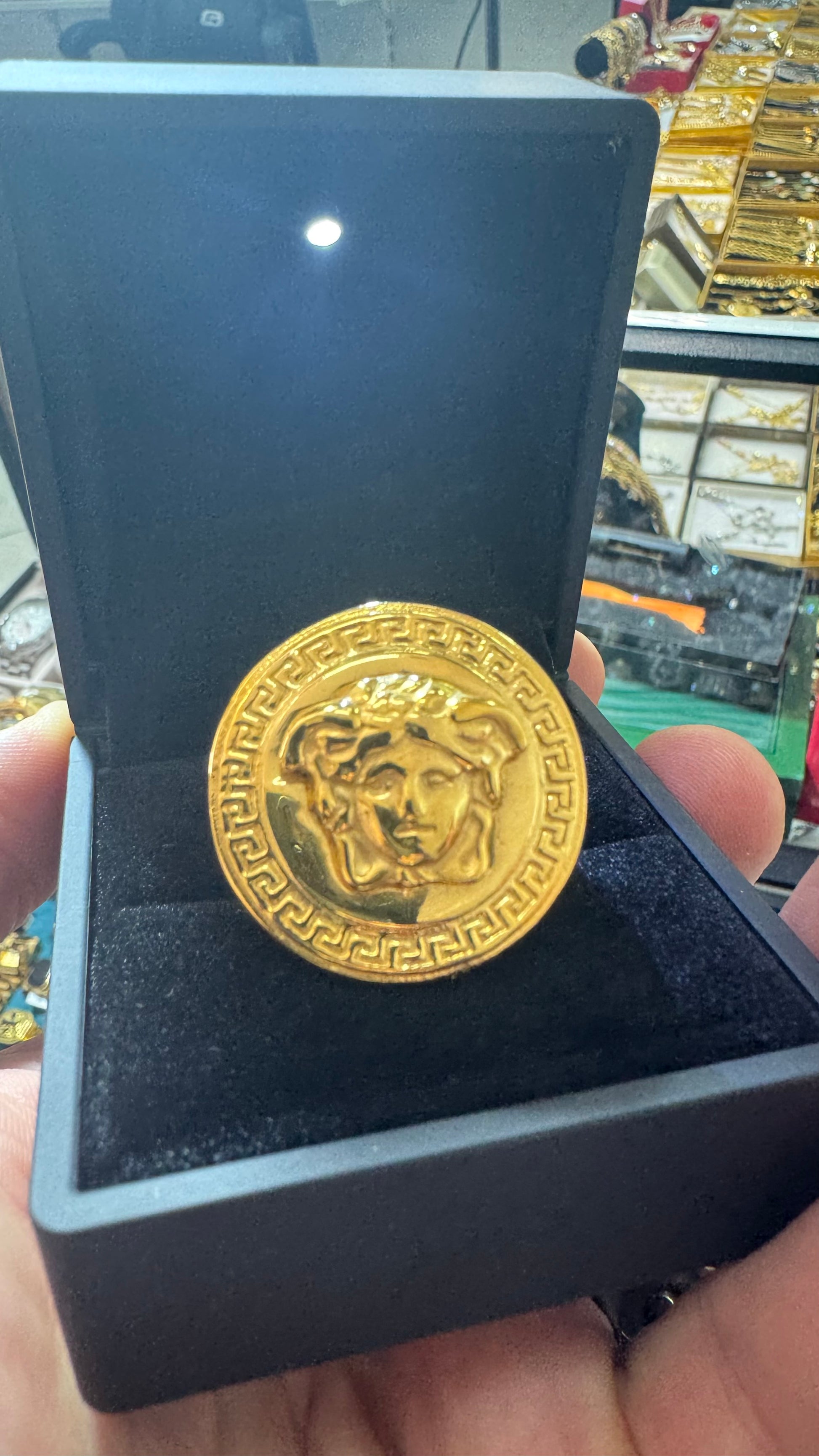 Anello con medusa in acciaio color oro unisex