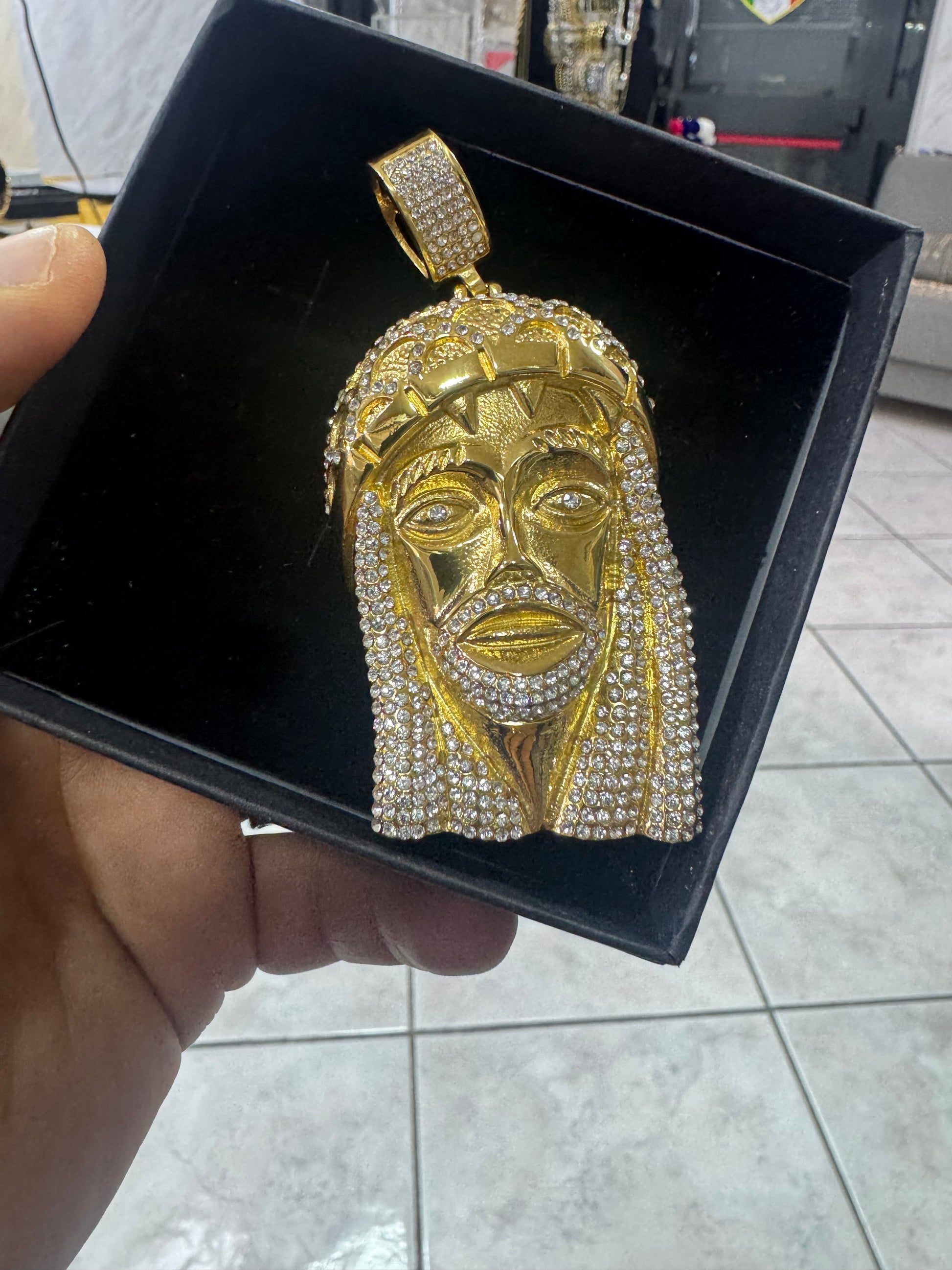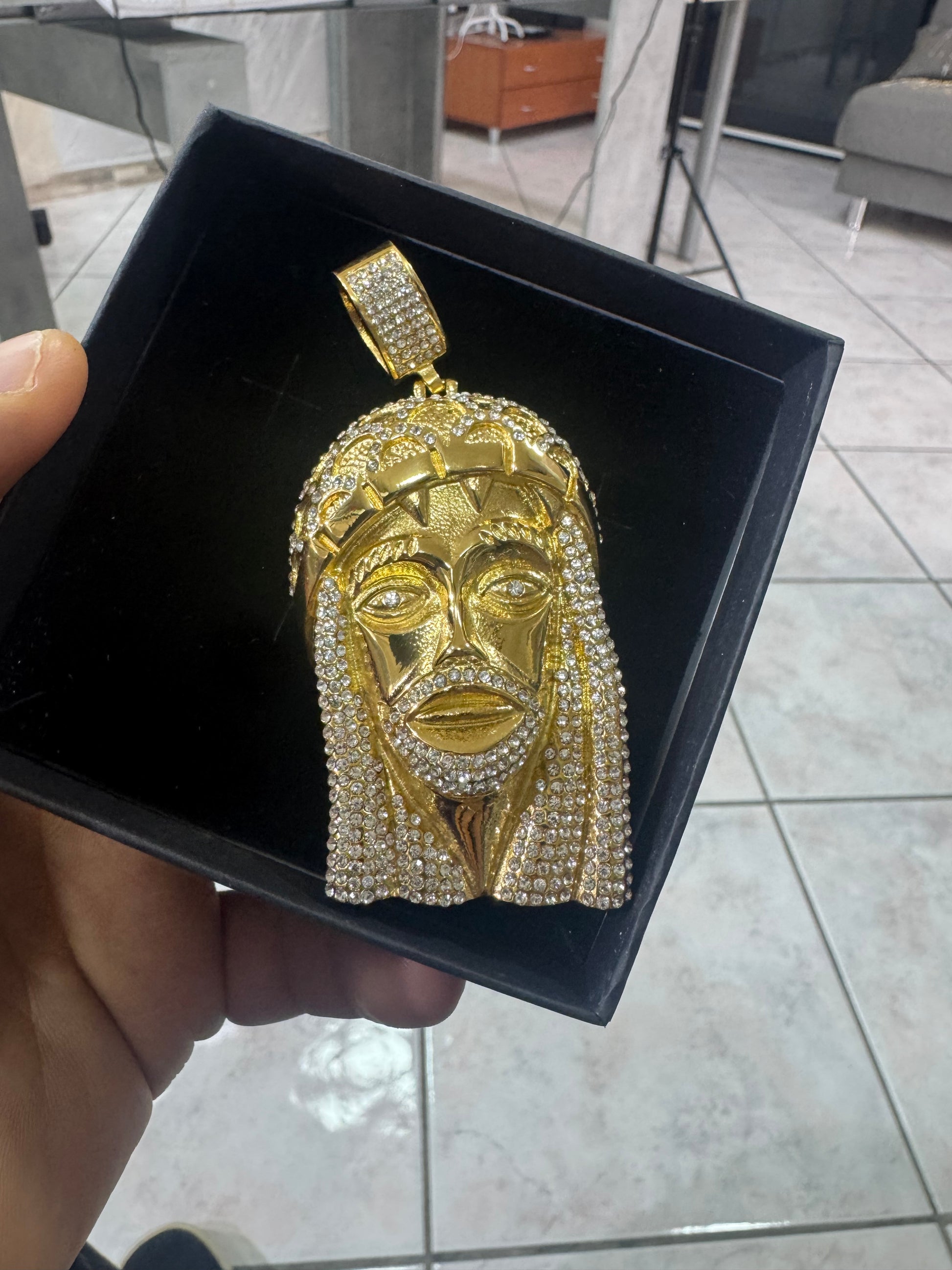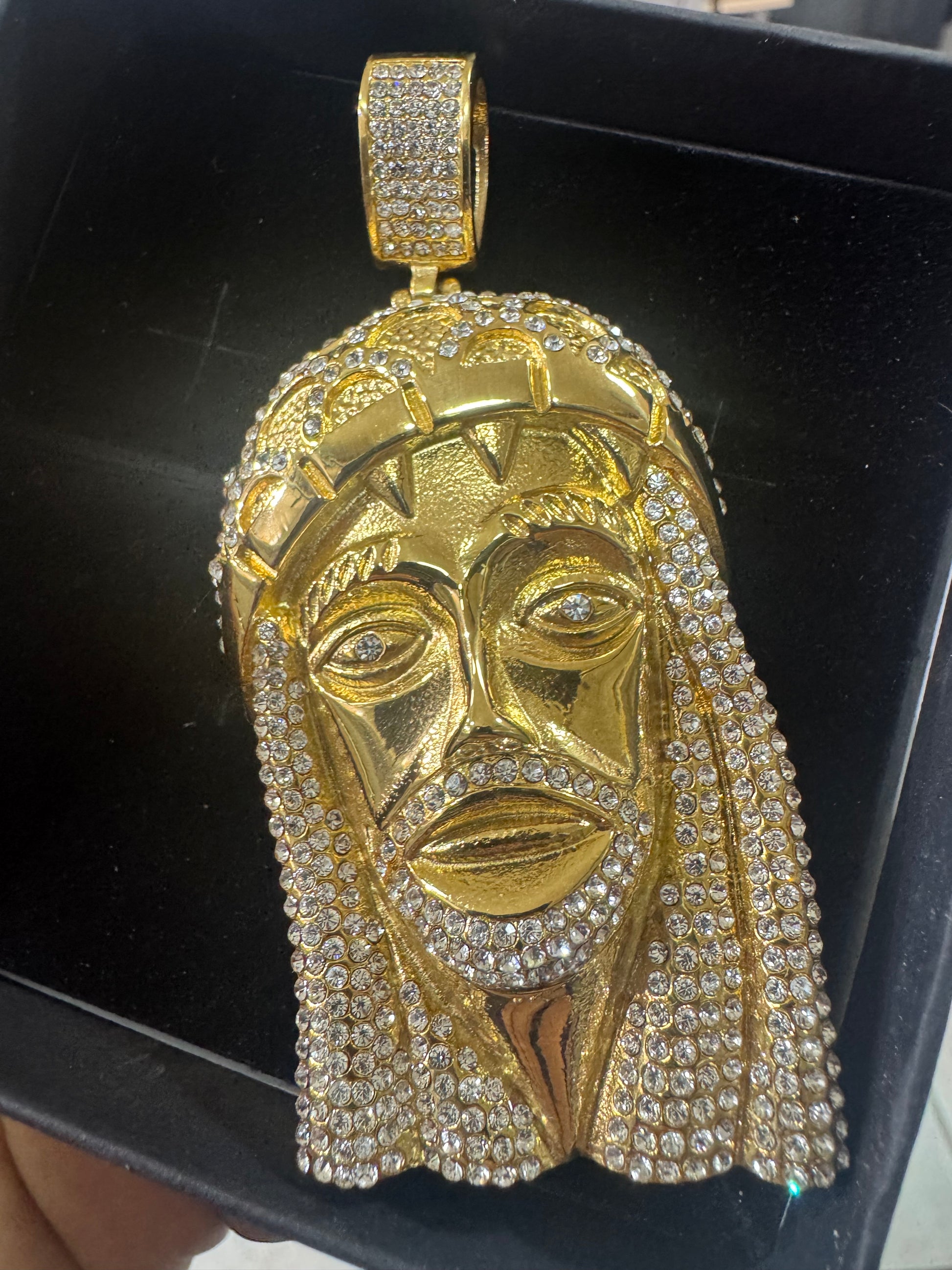 Ciondolo Gesù, grande modello Diamond in acciaio inossidabile, color oro da abbinare sotto tutti i tipi delle collane
