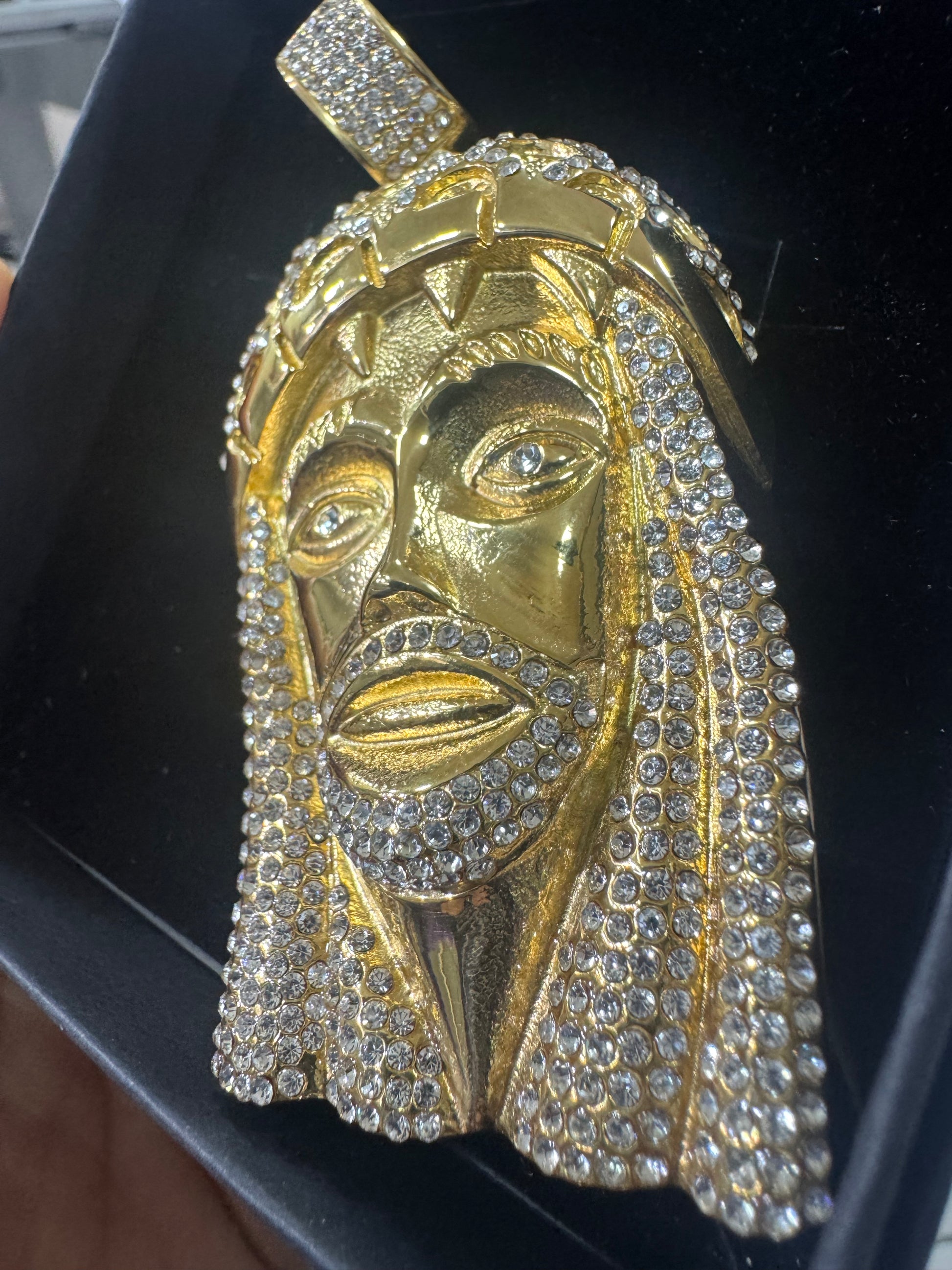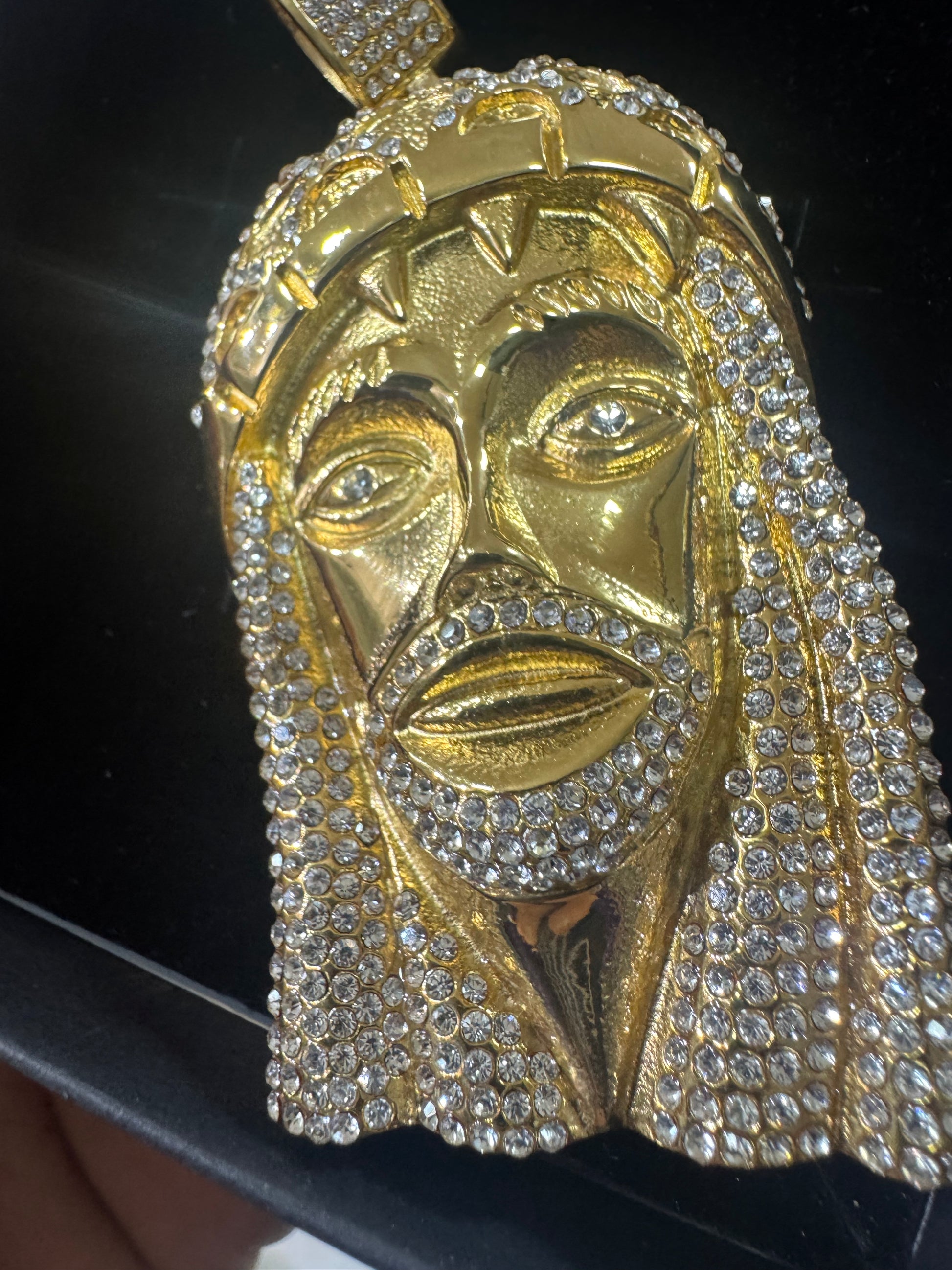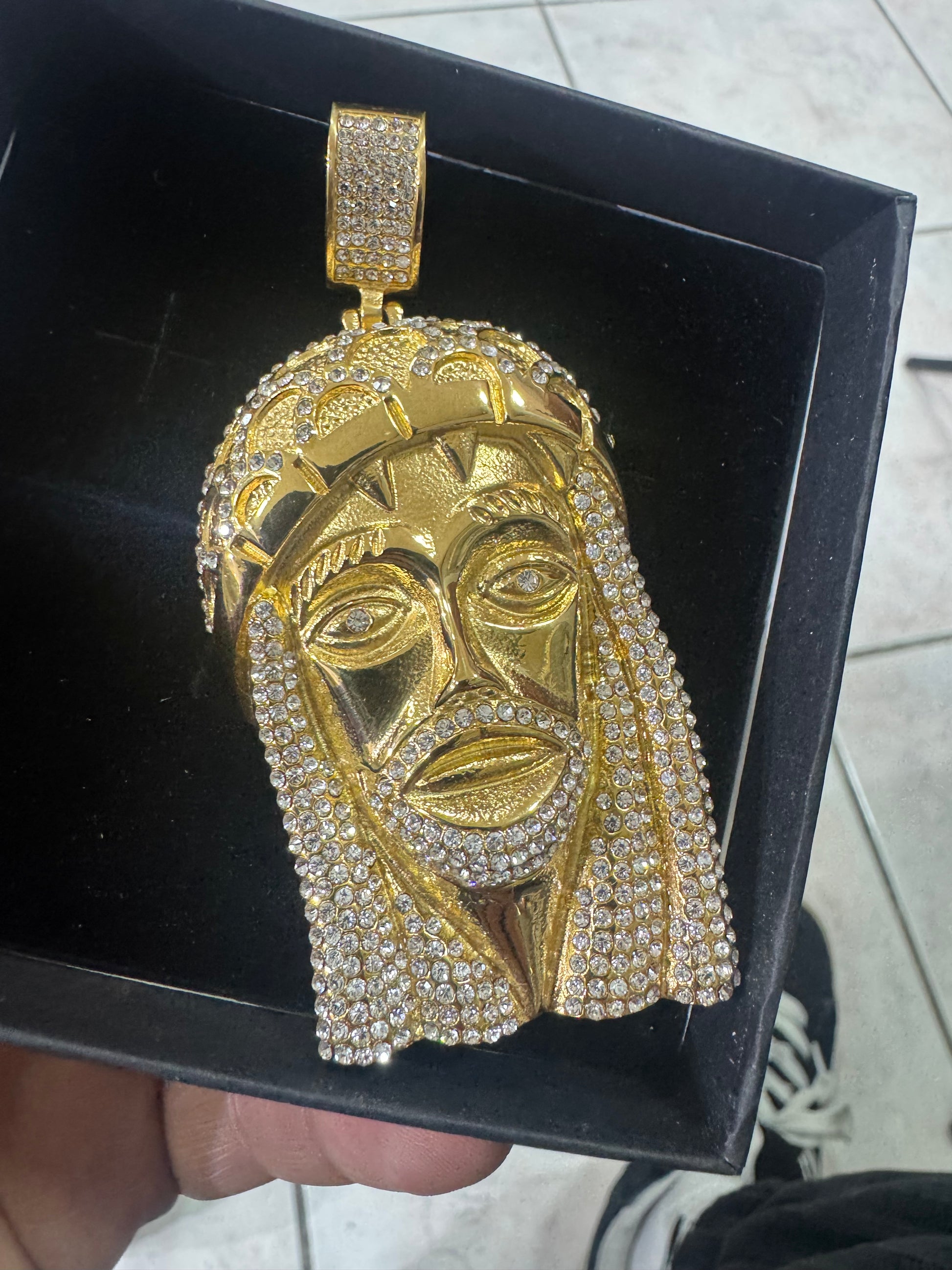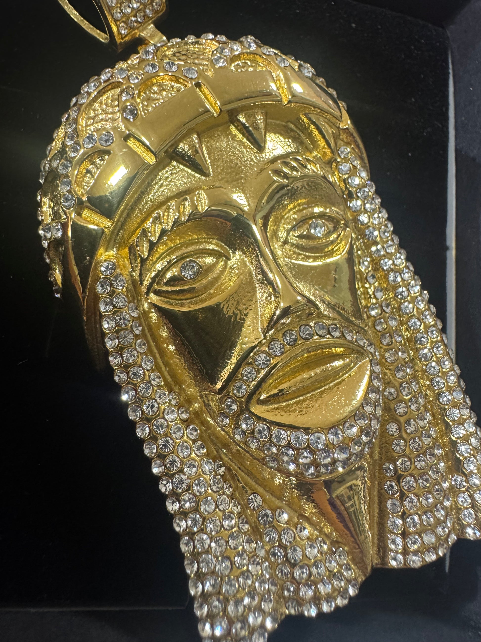 Ciondolo Gesù, grande modello Diamond in acciaio inossidabile, color oro da abbinare sotto tutti i tipi delle collane