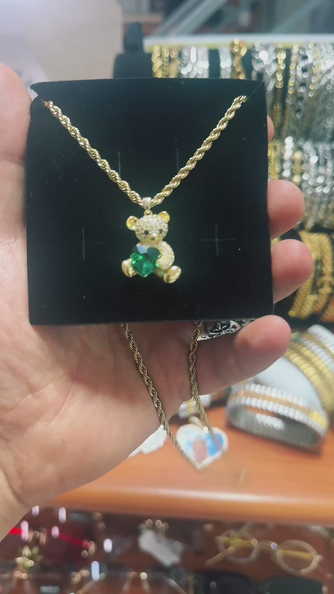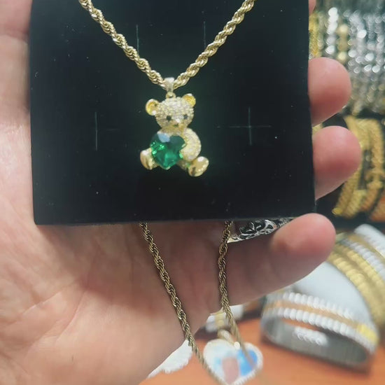 Collana con ciondolo teddy con cuore verde tra le braccia cuore verde porta speranza e fortuna in acciaio color oro