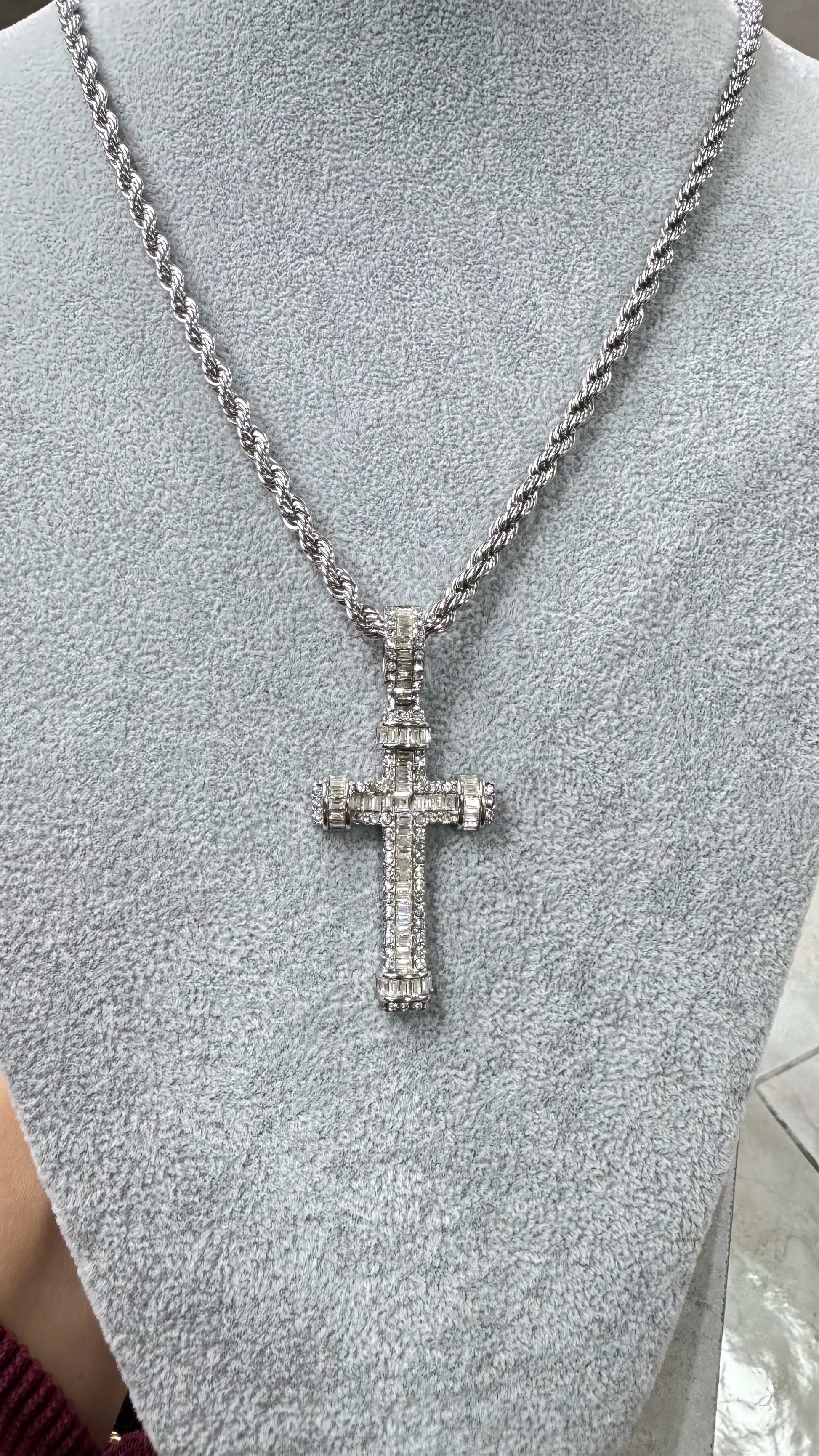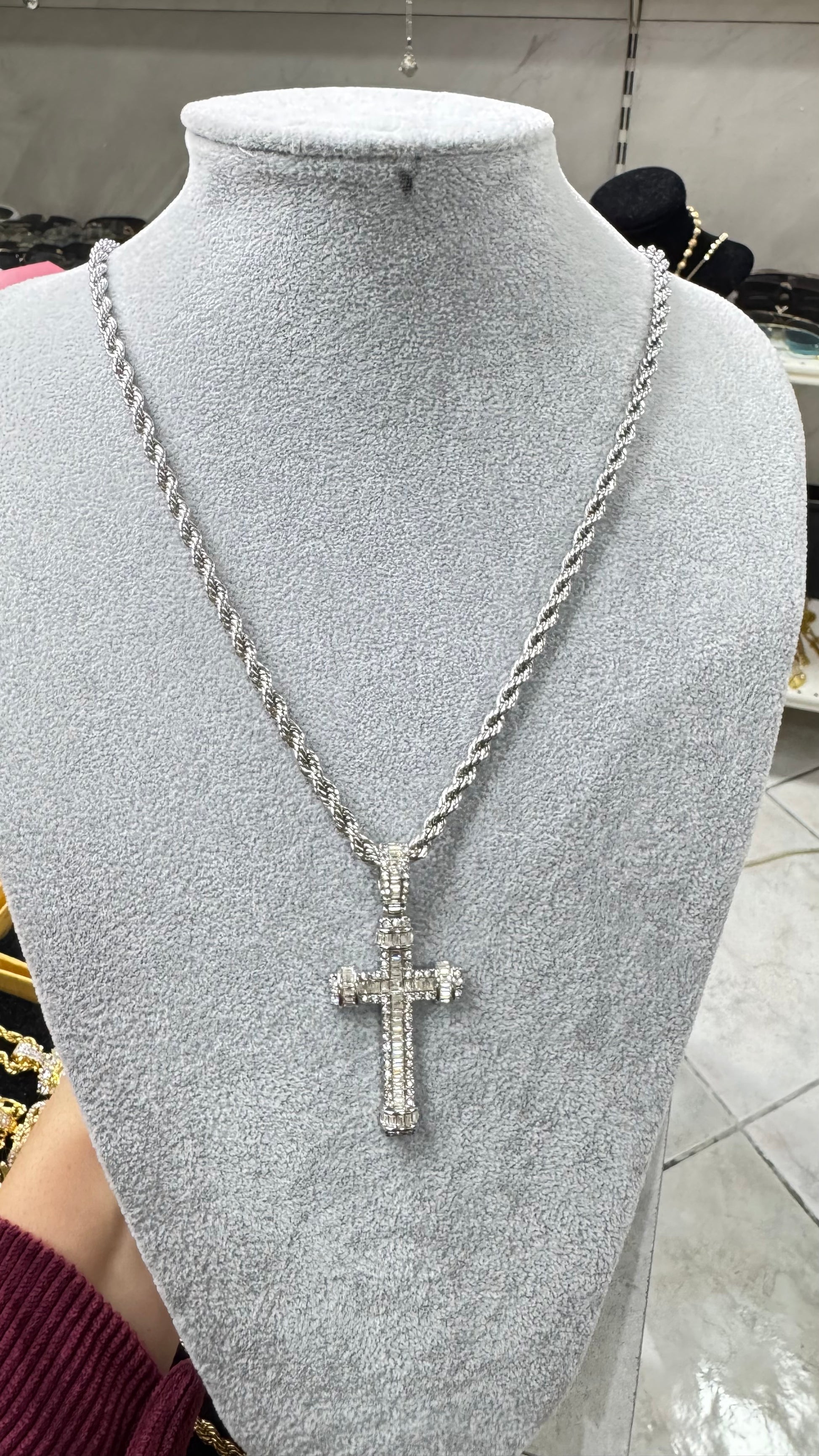 Collana a corda 60 cm acciaio con croce zirconata acciaio inossidabile