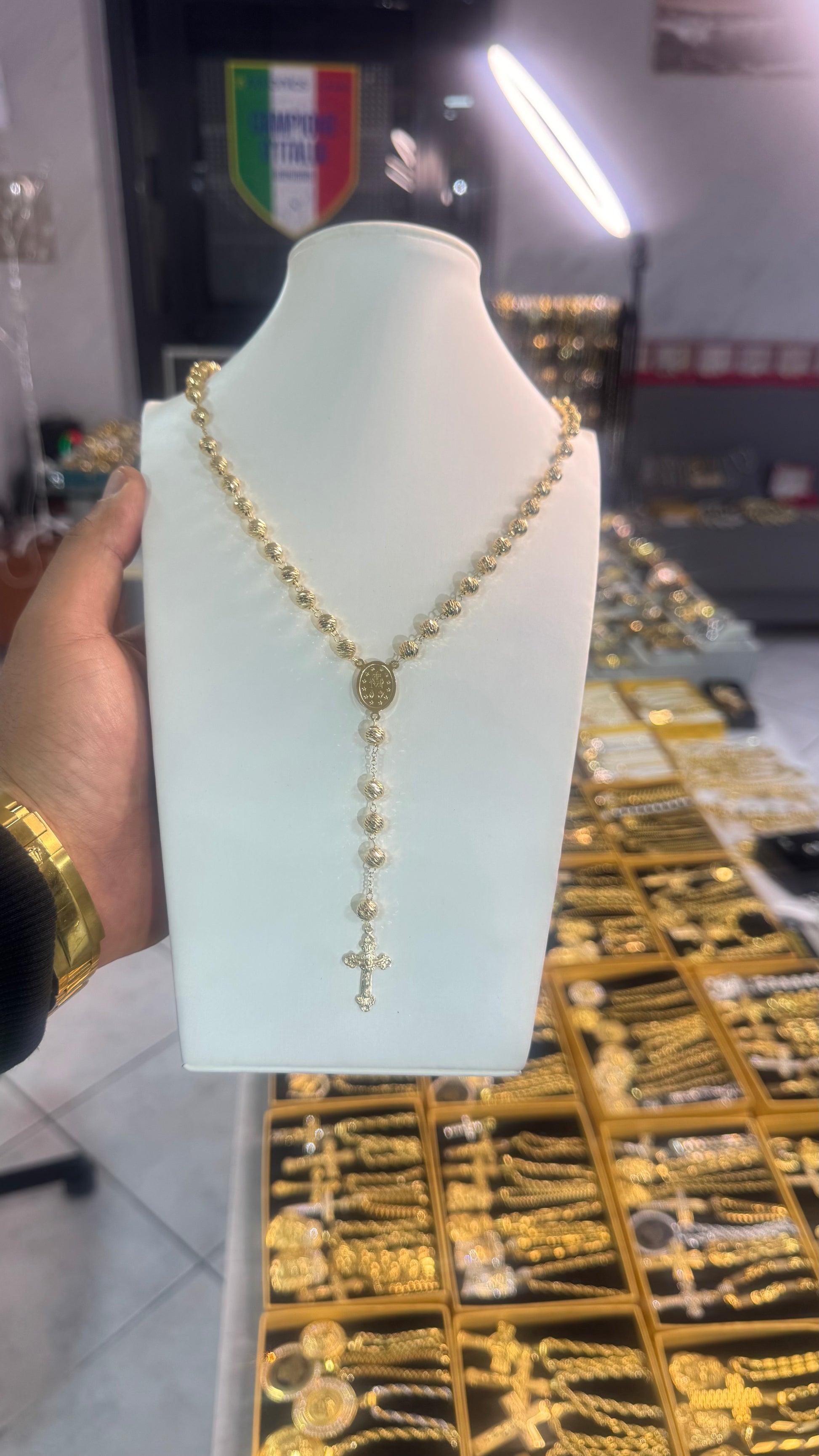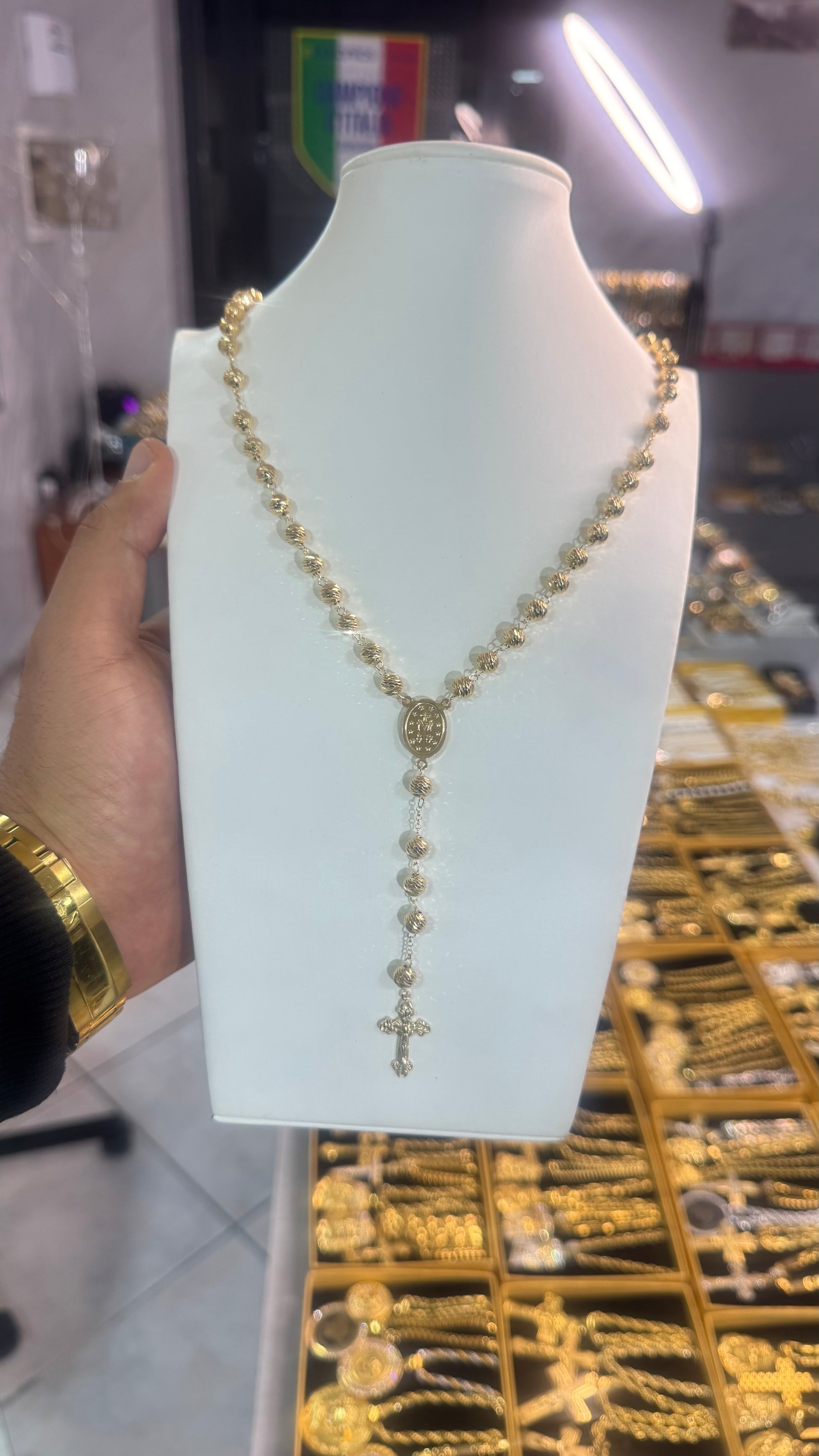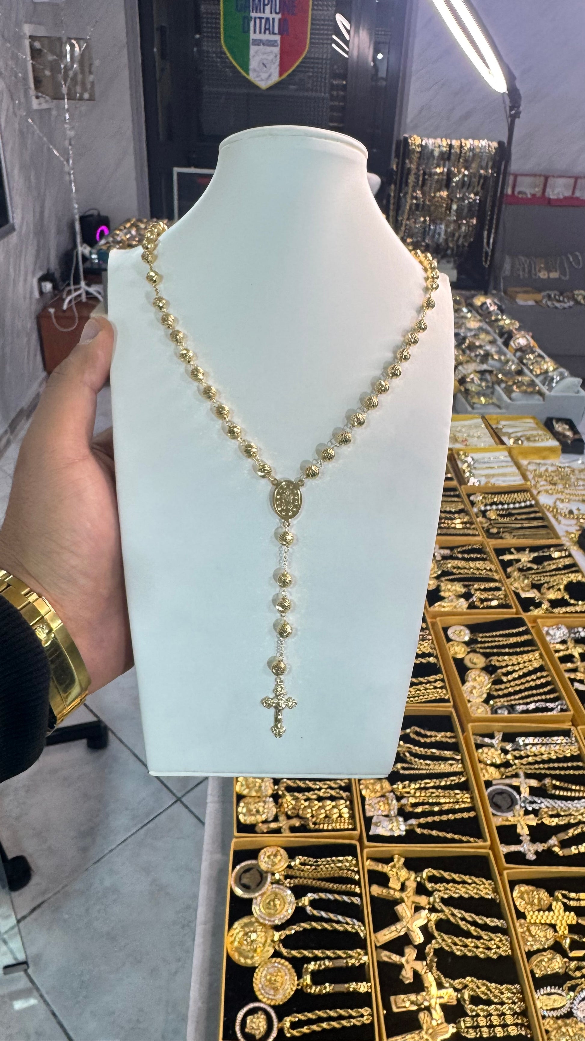 Rosario con Palline Slash 60 cm di lunghezza misura pallina 6 mm in argento 9:25 placcato oro modello unisex